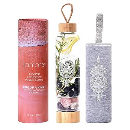 Crystal Water Bottles 19oz Large Crystal Elixir Infused Water Bottle with Changeable Crystals | Gem Water Bottle with Sacred Pattern and Words (Amethyst, Rose Quartz, Clear Quartz)