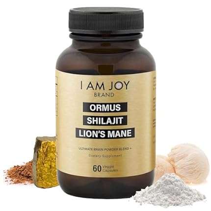 I Am Joy co. Ormus Shilajit Lion’s Mane – Ultimate Brain Power! Monoatomic 24k Gold – The Only Blend of Its Kind for Energy, Memory, & Focus – 60 Vegan Capsules