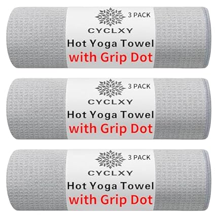 3 Pack Yoga Mat Towels with Grip Dot, Hot Yoga Towel Non Slip Yoga Mat Towel Non-Slip Sweat Absorbent Anti-Slip Yoga Towel for Bikram,Pilates