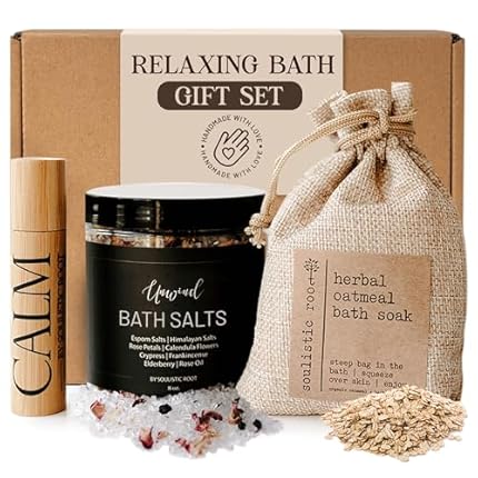 Soulistic Root Revitalizing Bath Set – Wellness Products with Tranquil Essential Oil Roller, Oatmeal Lavender Soak, Epsom Salts with Essential Oils, Ready-to-Gift Premium Box, Ideal Holiday Spa Gift