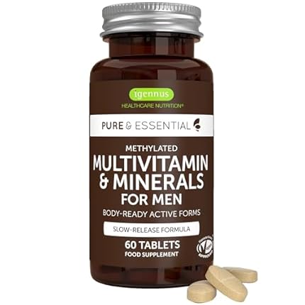 Igennus Methylated Men’s Multivitamin with 22 Actives, All-Day Nutrient Delivery, Pure & Clean, Methylfolate & Methylcobalamin, High Strength MTHFR Supplement, Non-GMO & Halal, 60 Tablets