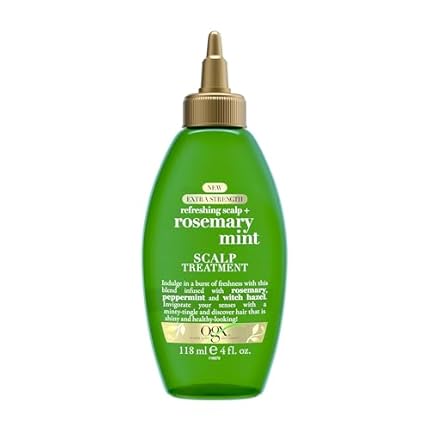 OGX Extra Strength Refreshing Scalp + Rosemary Oil Mint Dry Scalp Treatment, Peppermint & Witch Hazel Scalp Detox, Clarifying Leave-In to Help Remove Buildup and Refresh, Shiny Hair Finish, 4 fl oz