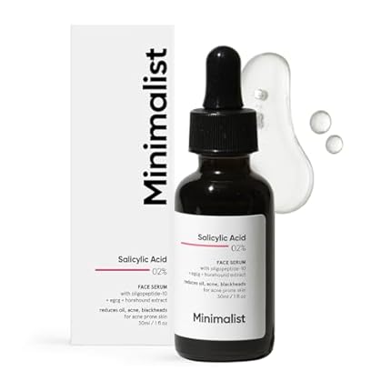 Minimalist 2% Salicylic Acid Serum For Acne, Blackhead & Open Pores | Reduces Excess Oil & Bumpy Texture | BHA Liquid Exfoliant for Acne Prone & Oily Skin | For Women & Men | 1 Fl Oz/30ml