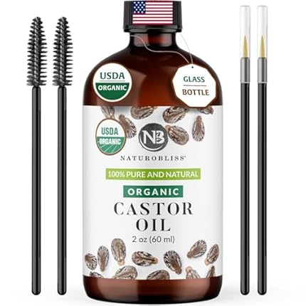 NaturoBliss 100% Pure Organic Castor Oil, Expeller-Pressed, Hexane-Free, Premium Carrier & Beauty Oil for Hair Growth, Eyelashes & Eyebrows, Skin Moisture, with Beauty Starter Kit – 2 oz