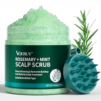 Scalp Scrub, Rosemary Scalp Exfoliator Scrub Shampoo, 2-in-1 Scalp Treatment with Mint Oil, Hair Treatment to Clarify and Remove Build Up with Silicone Scalp Massager, 10.6oz/300g