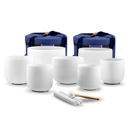 KRESEC 432Hz 6-12 Inch Crystal Singing Bowls Set of 7 – Chakra Tuned Quartz Sound Bowls for Meditation, Yoga, Reiki & Healing with Padded Cases, Suede Mallets & Silicone O-Rings