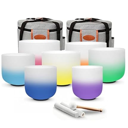 RYAN DVAN 432hz 6-12 Inch Set of 7 Pcs Gradient Design Quartz Crystal Singing Bowl Chakra Set Sound Therapy for Yoga, Reiki, Chakra Healing Energy Tuning & Mindfulness Kit