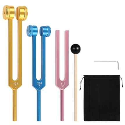 Tuning Forks for Healing Set (128Hz, 256Hz, 512Hz), Yoga and Meditation Accessories & Sound Therapy Devices, Sound Healing Instruments for Chakra, A Good Gift for Women and Meditation Beginner