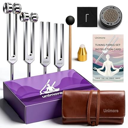 Tuning Forks for Healing Set (128Hz, 136.1Hz, 256Hz, 384Hz) – Weighted & Unweighted Tuning Forks with a Rubber Mallet – Chakra Sound Therapy Instruments with a Bag, Healing Gifts for Women & Men (10)