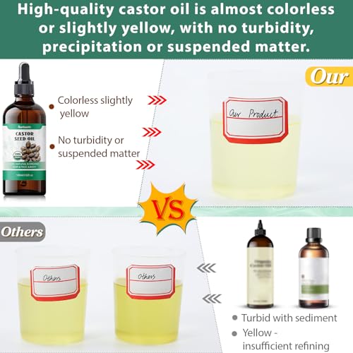 ORGANIC CASTOR OIL COLD PRESSED GLASS BOTTLE – 100% natural,cold pressed to ensure maximum retention of nutrients, suitable for skin absorption and improved efficacy. Hexane-free, cold pressed, no chemical additives, safe and reliable, glass bottle can effectively maintain the purity of castor oil
