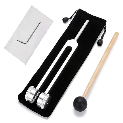 128Hz Tuning Fork Set for Sound Healing Therapy & Chakra Balance - Aluminum Meridian Tool with Reflex Hammer & Accessories