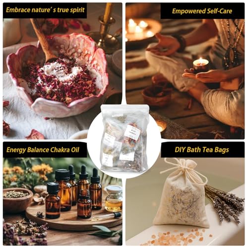 Great Value Wiccan Herbs Kits: You will get 32pcs different herbs and flowers with sealed bag, including rosebud, peppermint, motherwort, hyssop, yarrow, alfalfa, eucalyptus leaf, dandelion, etc. Each package is labeled for easy access (Tip: Herbs are not edible)