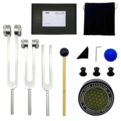 Tuning Forks for Healing Set (128Hz, 256Hz, 512Hz), Yoga and Meditation Accessories & Sound Therapy Devices, Sound Healing Instruments for Chakra, A Good Gift for Women and Meditation Beginner