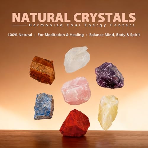 A COMPLETE CHAKRA BALANCING SYSTEM​ More than just stones, this is a curated toolkit for energy alignment. From Crown (Clear Quartz) to Root (Red Jasper), each generously sized (1.4-1.6″) raw stone is chosen to work in harmony. ​Experience the synergy:​​ amplify intentions, calm the mind, unlock creativity, and feel grounded, all with one cohesive set designed for tangible results.