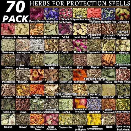 70pack Witchcraft Supplies Herbs Kit, Dried Flowers for Witch Beginner, Bulk Herb Gift Set for Wicca, Pagan, Wiccan Rituals, Magic Spell, Altar Supplies Healing Natural Herbal for Candle Soap Making