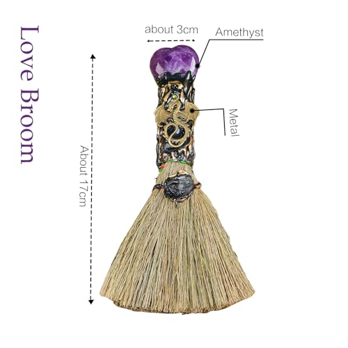 Amethyst Crystal Heart-Shaped Magic Broom – Reiki Energy Cleansing & Healing Tool, Feng Shui Home Decor, Witch Altar Accessory & Spiritual Gift for Women (Natural Gemstone, Witchcraft)
