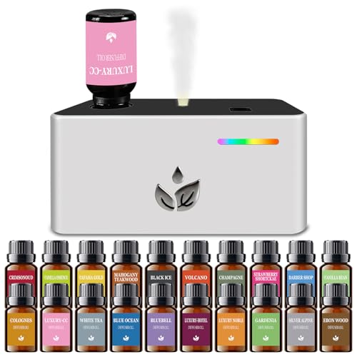 Essential Oil Diffuser with 20pcs Mixed Scent Fragrance Aroma Oils, Rechargeable Waterless Diffuser with 3 Spray Modes for Home Office Hotel (White Set 20PCS)