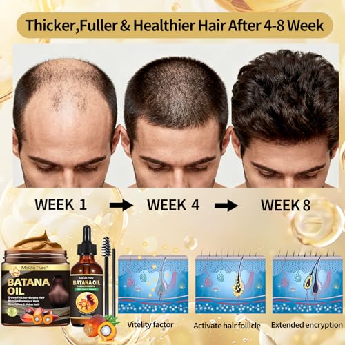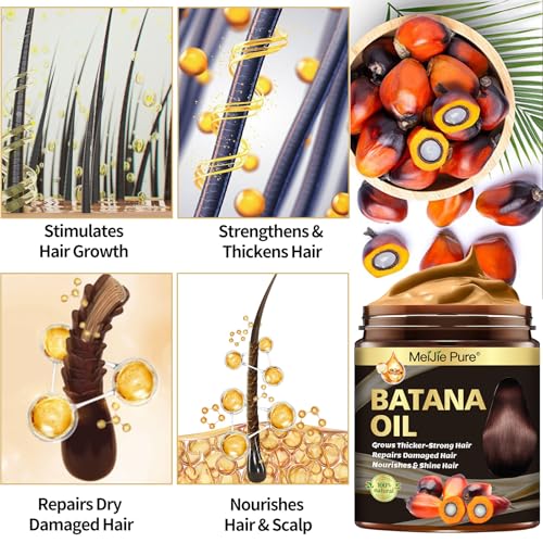 Batana Oil for Hair Growth–4Pc Set: Raw Batana Oil,Hair Mask Paste,Lash Wand & Brow Brush,Hair Growth Treatment Promotes Hair Thickness,Prevents Loss for Men Women,Deep Care for Scalp,Edges & Eyebrows