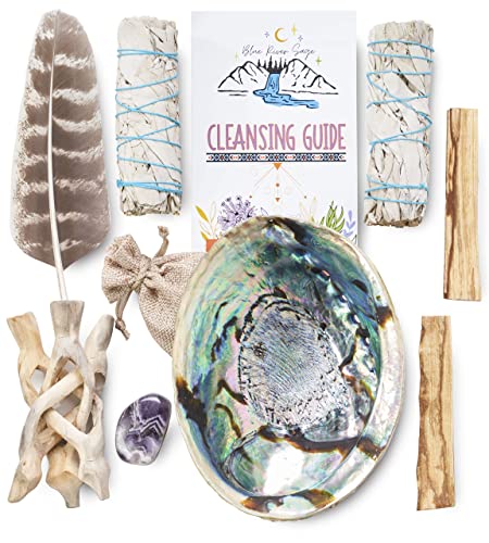 Blue River Sage Smudging & Energy Cleansing Kit with Amethyst, White Sage, Palo Santo, Abalone Shell, Stand & Guide (Regular)