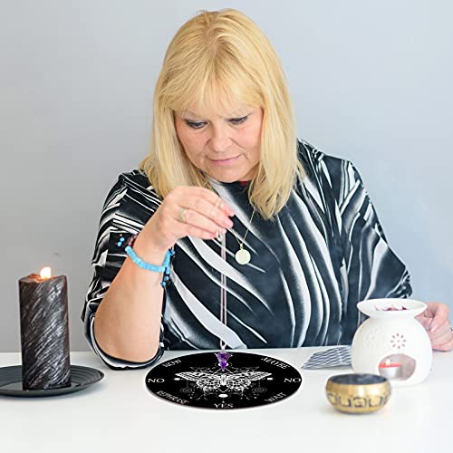 Size information: this witch pendulum board is approx. 17 x 17 x 0.3 cm/ 6.7 x 6.7 x 0.12 inch, light in weight and small in size, the pendulum board and amethyst crystal necklace are easy to carry around and convenient to store