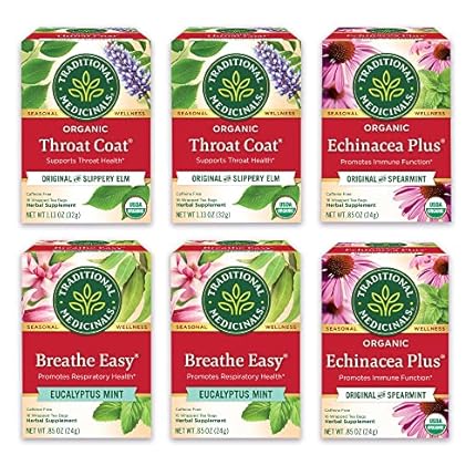 Traditional Medicinals Tea Organic Seasonal Care Variety Pack, Throat Coat, Echinacea, Breathe Easy with Eucalyptus to Support Respiratory Health, 96 Tea Bags, (6 Pack)