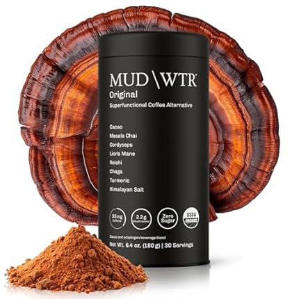 MUDWTR Original Mushroom Coffee Alternative | 2,240mg USA Grown & Adaptogenic Mushrooms | USDA Organic | Lion’s Mane, Cordyceps, Chaga & Reishi | Energy, Focus & Immunity Support | 30 Servings