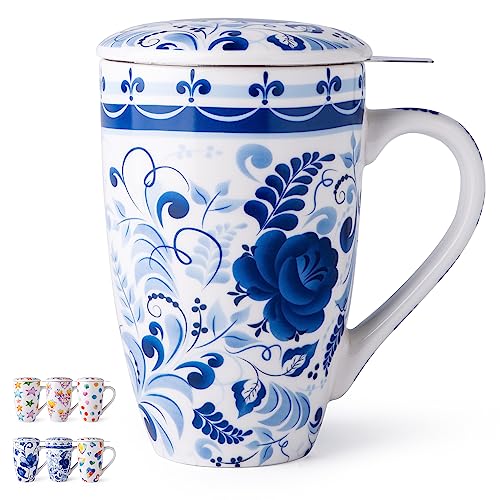 GBHOME Tea Mug with Infuser and Lid, 18 Ounce Large Ceramic Loose Leaf Tea Cup, Microwave, Dishwasher Safe Tea Steeping Mug, Pefect Gift For Tea Lover.