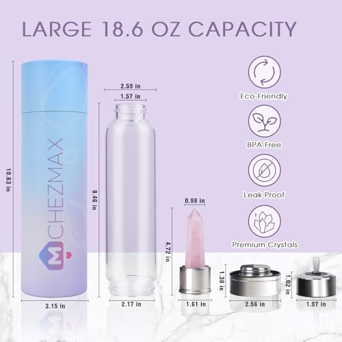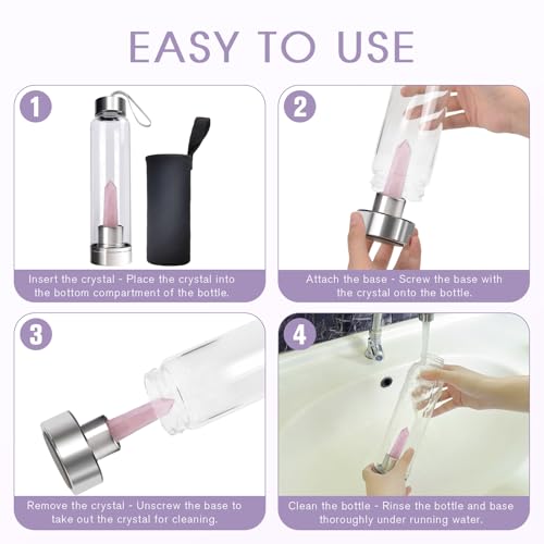 ChezMax Crystal Glass Water Bottle Energy Quartz Gemstone Water Bottle with Changeable Natural Crystal Center for Healing and Wellness