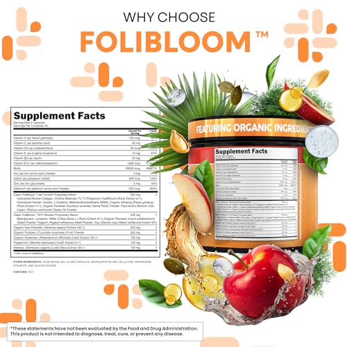 Introducing the Clean FoliBloom Triple-Action Blend – pumpkin seed extract, stinging nettle, onion extract, organic ginseng supplement, spirulina, apple cider vinegar, glutathione and organic hyaluronic acid join forces with msm to energize follicles. We further amplify results with hydrolyzed keratin, blueberry antioxidants and zinc supplements for men, giving women equal shine with vitamins for women. Together they help aid against oxidative stress and environmental aggressors.