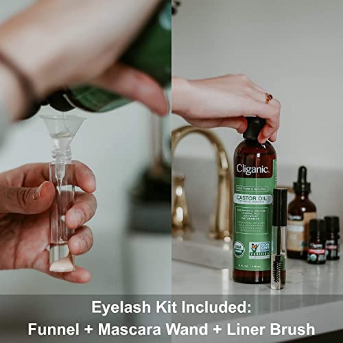 Cliganic Organic Castor Oil, 100% Pure (6oz with Eyelash Kit) – For Eyelashes, Eyebrows, Hair & Skin | Natural Cold Pressed Unrefined Hexane-Free