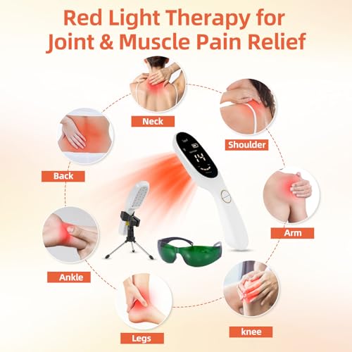 Cold Laser Therapy Device for Humans & Dogs, 4x808nm + 14x650nm Red Light Therapy for Body Pain Relief, Handheld lllt Near Infrared Light Wand with Stand for Joint, Back, Knee, Muscle Use