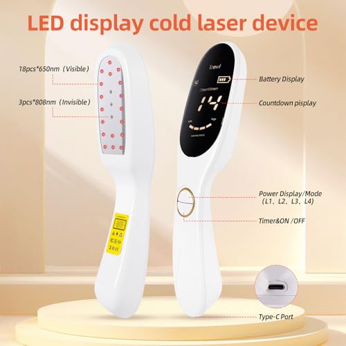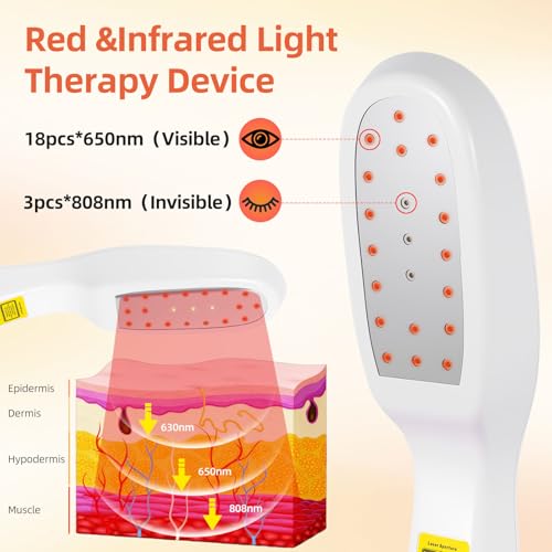 【Upgraded Dual-Wavelength Technology】 Powered by Low Level Laser (LLLT) technology, this Cold Laser Therapy Device combines 3×808nm infrared and 18×650nm red light to deliver balanced surface and deep-reaching light care for overall joint and muscle comfort. (Note: 808nm light is invisible to the eye but detectable with phone cameras.)