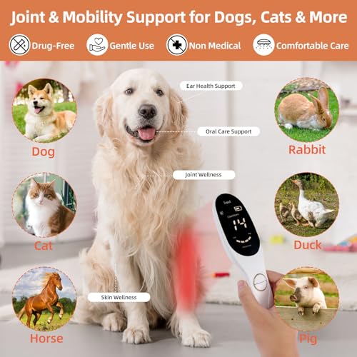 【Human & Pet Friendly Design】 Designed for humans and pets (dogs, cats, even horses), this red light therapy for dogs device supports joint mobility, spinal comfort, and skin wellness, offering gentle near-infrared light for daily well-being.