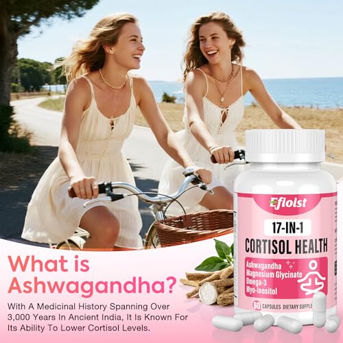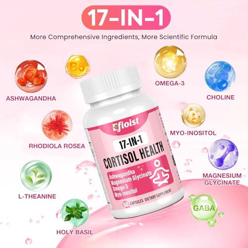 Cortisol Supplement for Women, 17-in-1 Hormone Harmony for Women, Cortisol Reducer with Ashwagandha, Rhodiola Rosea, Magnesium Glycinate, Omega-3, for Mood, Focus, Sleep Support, 60 Capsules