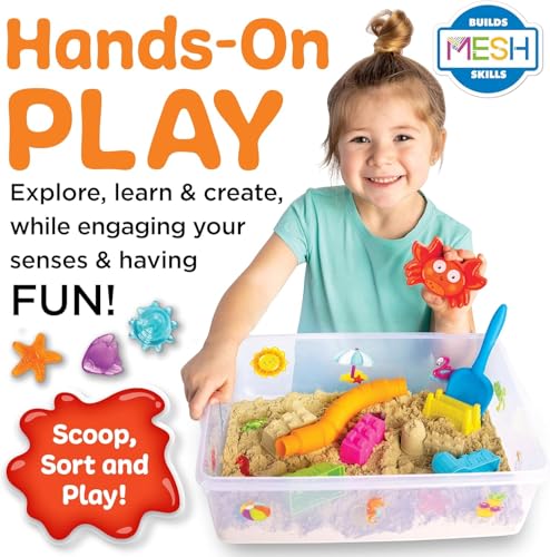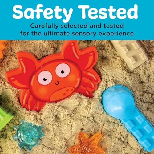 SENSORY SAND & TODDLER TOYS: Dive into the Sensory Bin Beach kit for a sandy adventure where toddlers scoop, sort, and discover treasures, fostering hours of imaginative play. This indoor beach in a bin offers a self-contained under-the-sea experience with 2.5 lbs of moldable sensory sand, colorful shells, and additional sensory toys for toddlers 3+ for endless educational play