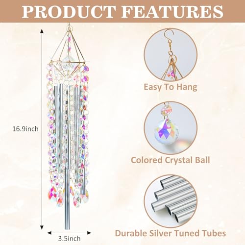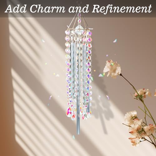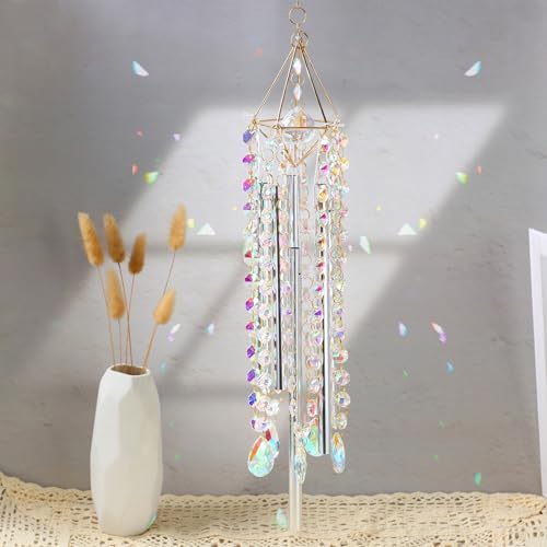 Crystal Wind Chimes – Glass Wind Chimes for Outside, Outdoor Crystal Suncatcher with Tuned Tubes, Reflective Windchimes Outdoors Unique, Hanging Prism Rainbow Maker Chandelier Home Decor Gift