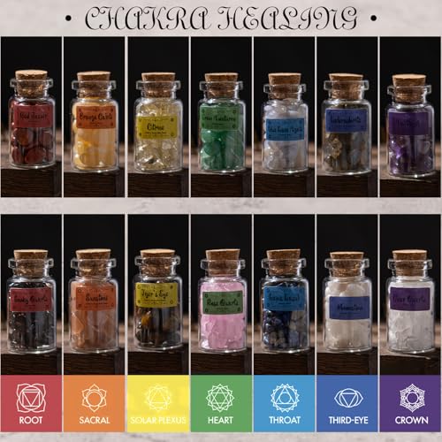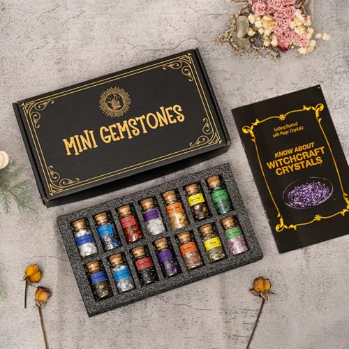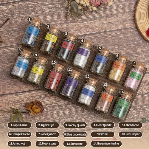 Crystals for Witchcraft in Bottles,14pcs of Crystal Sets for Witchcraft Supplies,Real Crystals and Healing Stones,Wiccan Supply Tool,Mini Gemstones,Chakra Healing Crystals