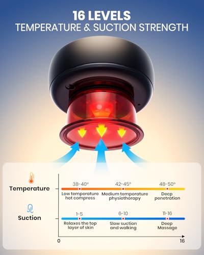 [Therapy That Adapts to You] This cupping therapy set features 16 levels of suction and 16 levels of heat, plus deep and soothing modes. Whether you need gentle care or deep muscle stimulation, it delivers tailored relief across body areas. Tip: Start at level 1 if you’re new.