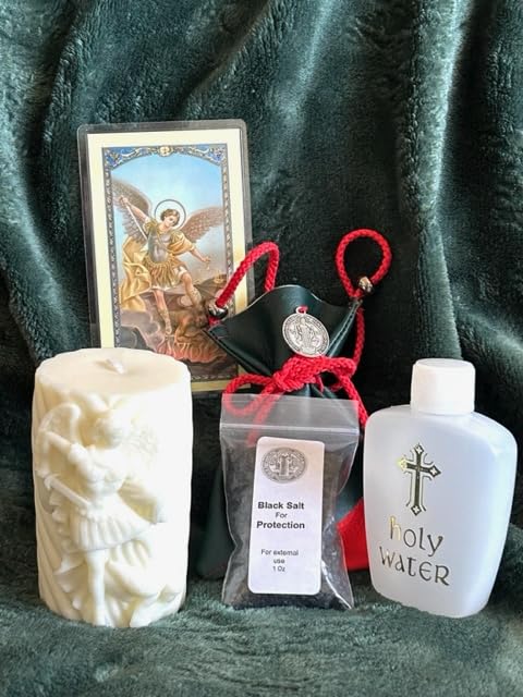 Energy Protection kit, for Protection-Rituals- Spell- Purifying- Cleansing, Kit Includes: Incense, Holy Water, Black Salt with beaytifully Hand Crafted Pouch, Arch Angel Michael Candel & Prayer Card.