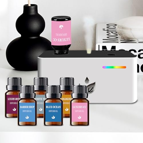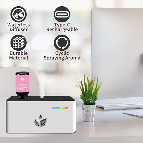 Essential Oil Diffuser with 20pcs Mixed Scent Fragrance Aroma Oils, Rechargeable Waterless Diffuser with 3 Spray Modes for Home Office Hotel (White Set 20PCS)
