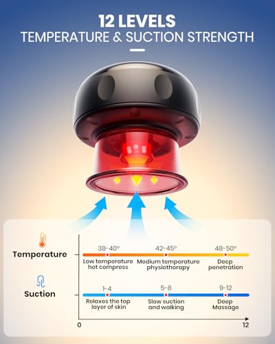[Customizable Experience] This cupping set offers 12 suction levels and 12 heat settings, plus deep and soothing modes. Whether you prefer gentle care or invigorating muscle stimulation, it provides tailored support for various body areas. Tip: Start at level 1 if you’re new to cupping.