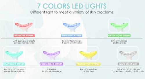 7 Color Face and Neck Massager Light Therapy, Red Light Based Facial Massager for Skin Care, Smoothing, Firming (White)