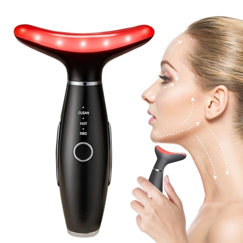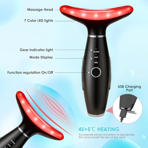 Face Massager -7 Color Red-Light-Therapy for Face and Neck for Wrinkles, Double Chin, Vibrating Facial Massager with Thermals (Daik Black)