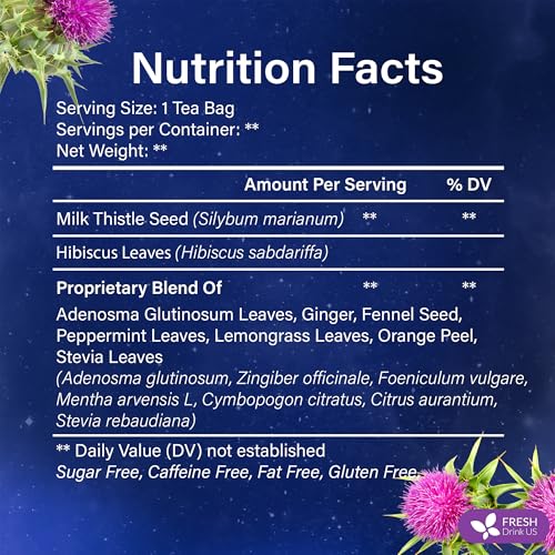 FreshDrinkUS, Premium Liver Herbal Detox Tea – Strong Blend Of Milk Thistle, Hibiscus, Peppermint & Ginger | Fennel, Lemongrass & Orange Peel with Stevia | Vibrant Caffeine-Free Botanical Blend