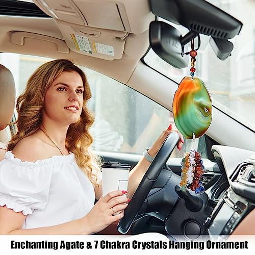 ♬【1 Agate Wind Chimes+ 1 Car Charm】The garden chimes is 29 inches in total length and the car hanging ornament is 13.4 inches long, chipped stones size: 5-8mm. The car cham with 7 chakra stones (Clear Crystal Quartz, Amethyst, Lapis Lazuli, Green aventurine, Tiger eye, Yellow Jasper, Red Agate.) They are used to balance the chakras that located on the midline of the body, help you find strength and stability and brighten up your vehicle interior.