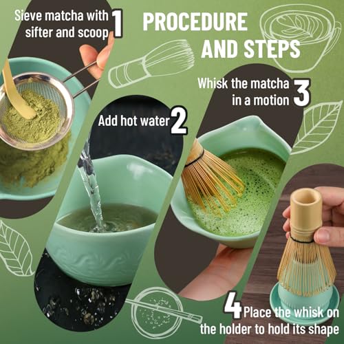 Ready for an Authentic Ceremony: Beautifully designed matcha whisk set that works straight out of the box; The ceramic bowls unique curves and patterns serve as decorative pieces while premium materials make it perfect for gifting and decorations; Our full-color guide provides step-by-step instructions and delves into the rich history of the traditional tea ceremony, making it a deeply cultural and perfect gift