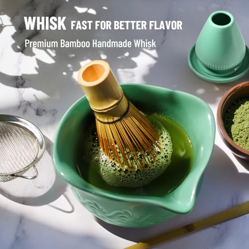 Green Matcha Whisk Set: Ceramic Matcha Set for Frothy Tea Ceremony Bowl & Whisk for Your Morning Ritual, Gift for Tea Lovers & Beginners
