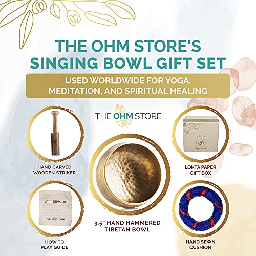 Handcrafted Tibetan Singing Bowl Gift Set – 3.5” Sound Bowl for Meditation, Sound Healing & Yoga – Mindfullness Christmas Gift – Authentic Hand-Hammered in Nepal – The Ohm Store