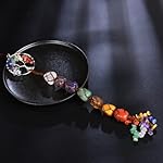 Handmade Crystal Window Car Hanging Ornaments 7 Chakra Home Decoration Feng Shui Ornament Yoga Meditation Car Decoration Tumbled Palm Stones (7 Chakras Tree)