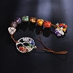 [7 Chakras Healing Crystals]: Clear Crystal Quartz, Amethyst, Lapis Lazuli, Green aventurine, Tiger eye, Yellow Jasper, Red Agate. Tree of Life Size: 1.77 inches,Tumbled stones size: 18-20mm, Chipped stones size: 5-8mm. Total Length: 29-30.5cm(11.5-12 inches)